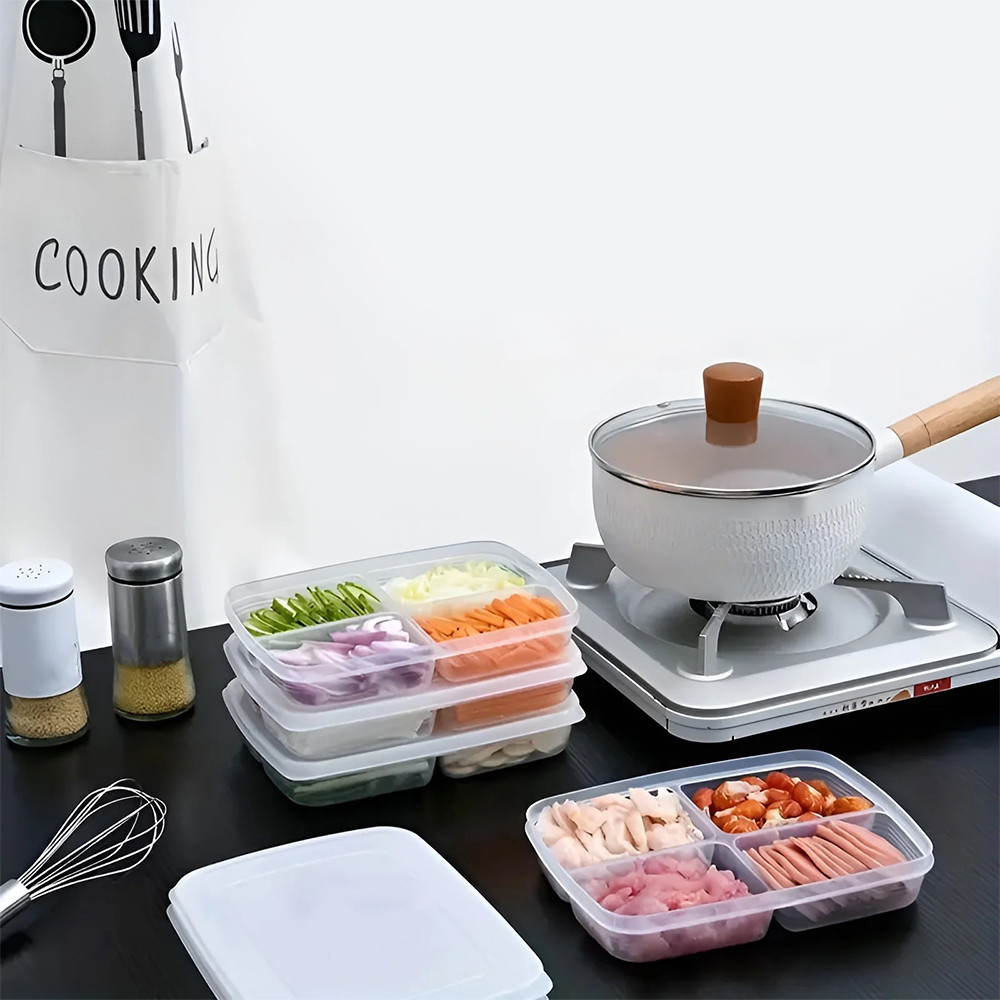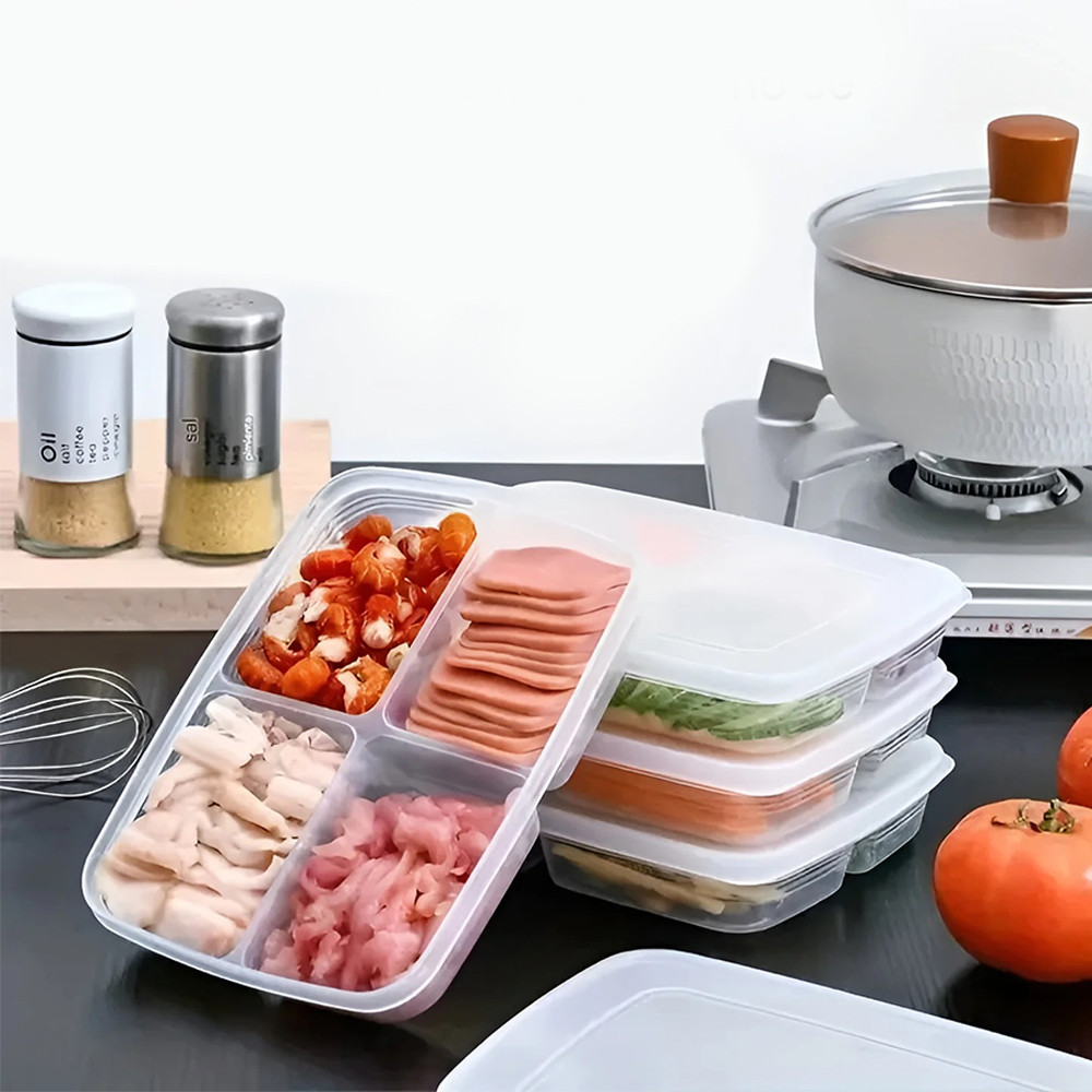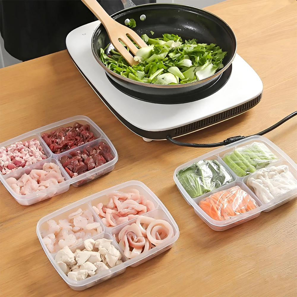 Design se 4 přihrádkami umožňuje uchovávat potraviny odděleně, čímž se zabrání míchání chutí a textur. Je to ideální řešení pro organizaci svačin, zeleninových tyčinek, ovoce nebo menších porcí.