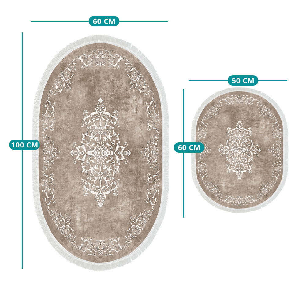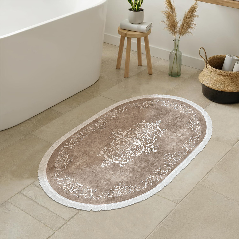 Béžový odstín a klasický vzor vytvářejí harmonickou, uklidňující atmosféru. Dva koberce v různých velikostech se perfektně hodí před umyvadlo a vanu nebo sprchu.