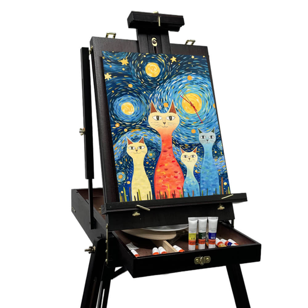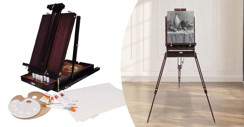 - 1× dřevěný malířský stojan (s rukojetí a ramenním popruhem)