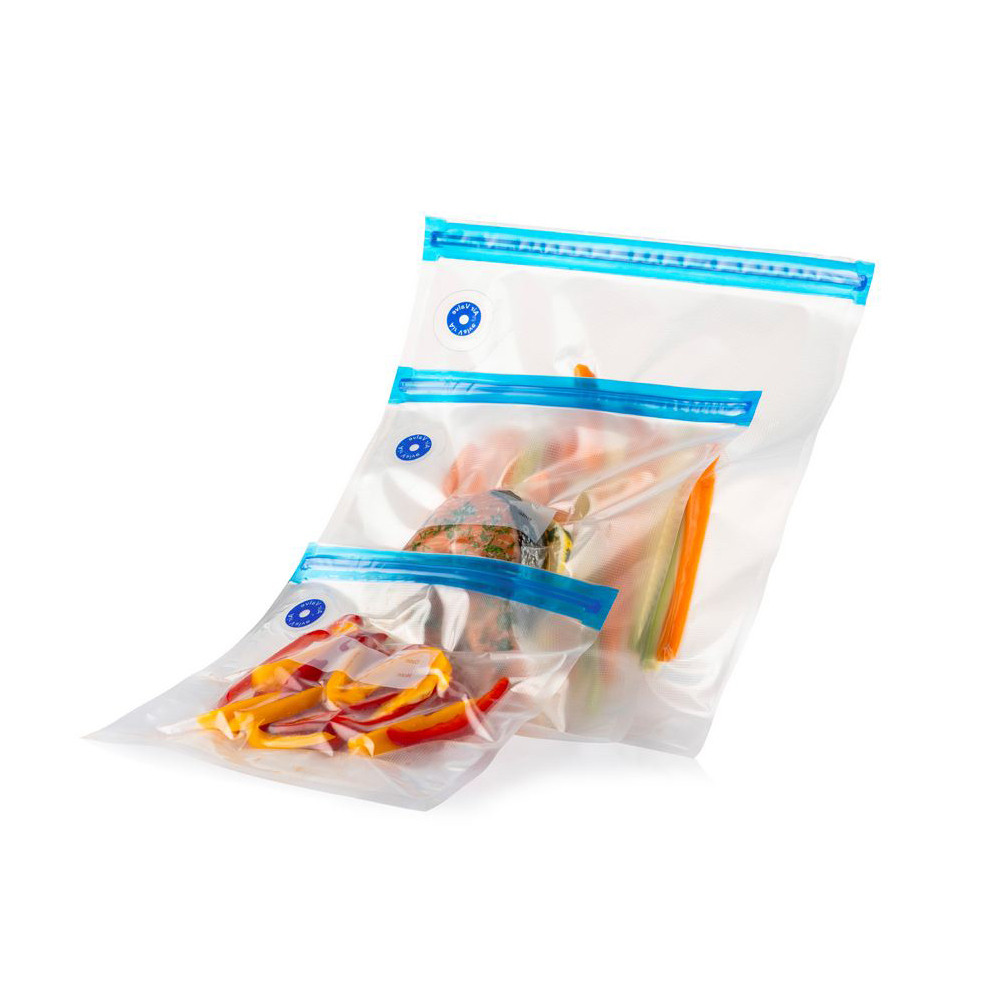 Různé velikosti úložných nádob a odpovídajících sáčků umožňují flexibilní použití. Součástí sady je snadno použitelná vakuová pumpa, která vám umožní rychle vytvořit vzduchotěsné uzavření.