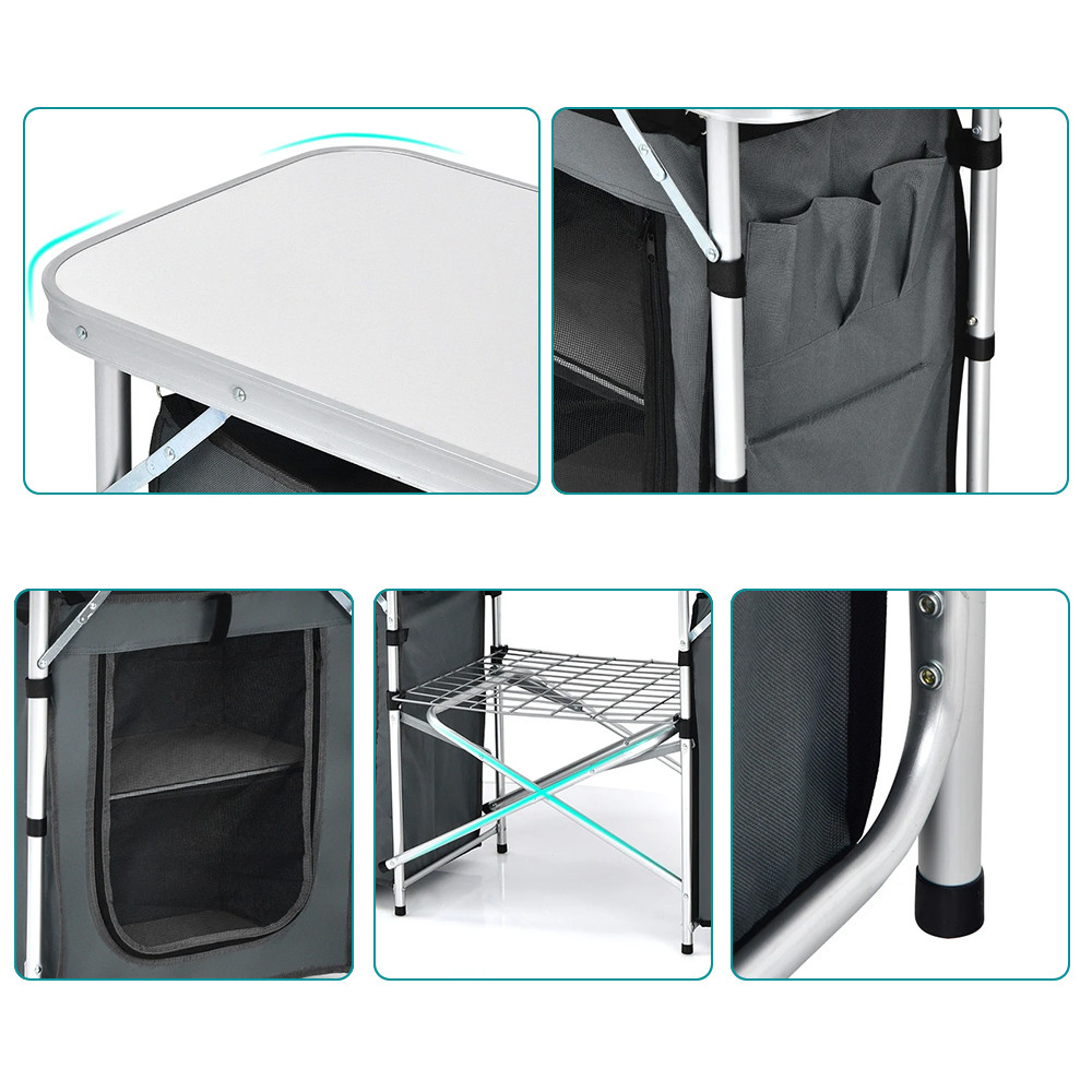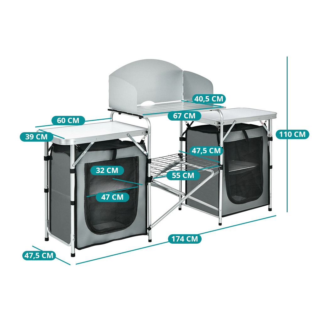 - Skládací kempingová kuchyně s úložným systémem
