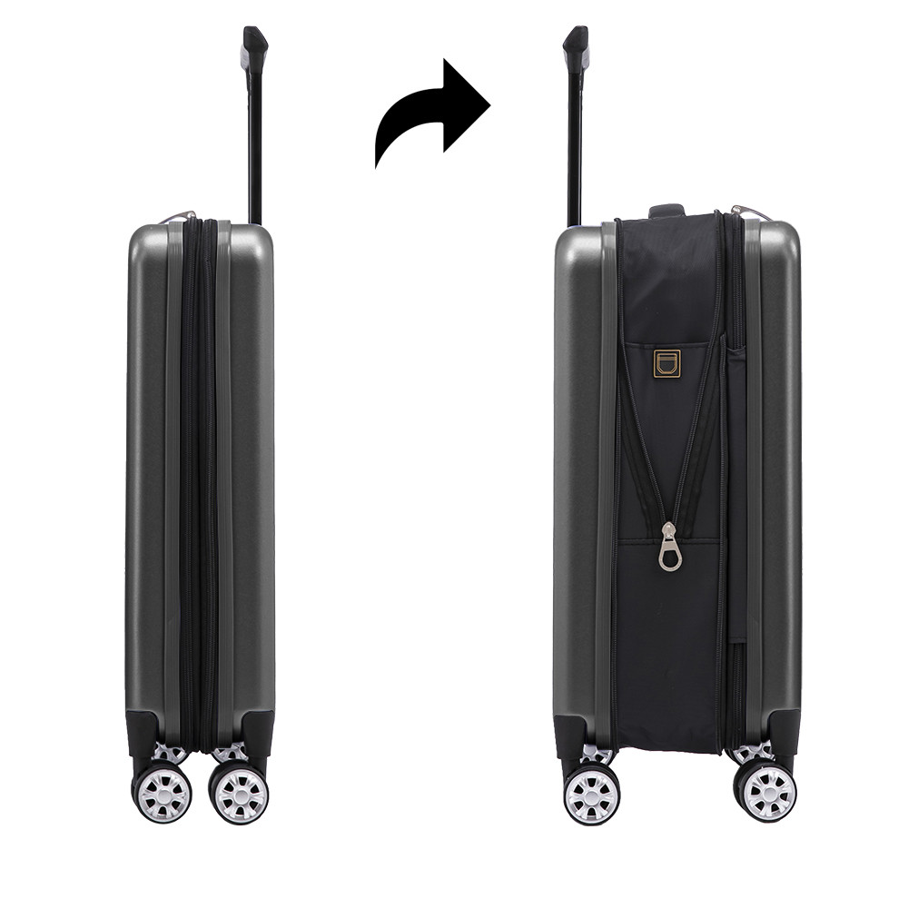 Kufr je vyroben z odolného materiálu PC+ABS, který odolává nárazům i poškrábání. Vysouvací rukojeť z hliníkové slitiny je pevná, ale lehká, což zajišťuje pohodlné používání i při delších cestách.