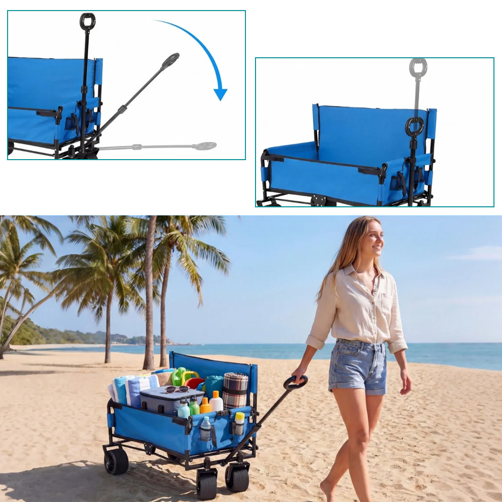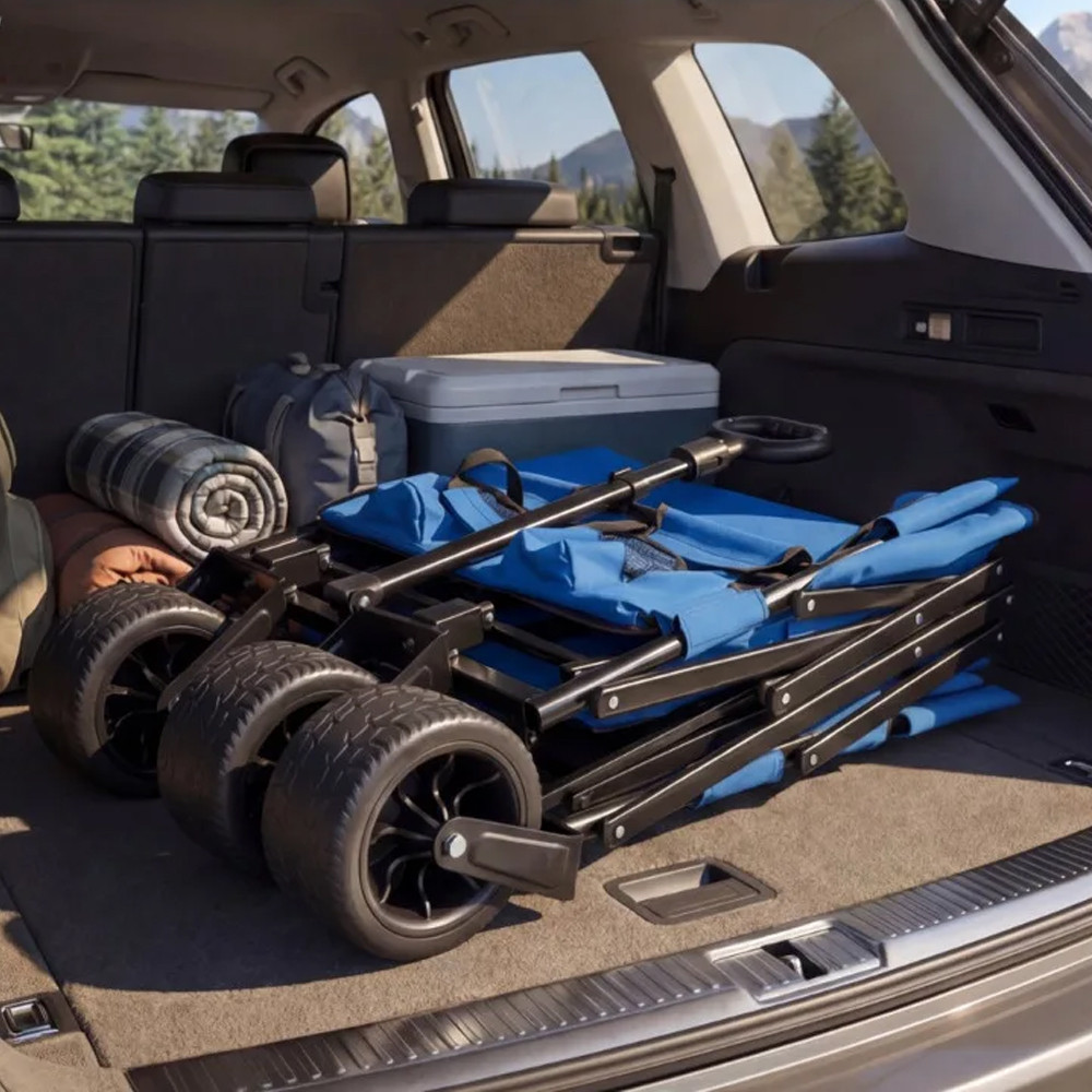 Pokud nechcete nosit věci v několika kolech, tento vozík vám ulehčí zátěž. Velká kola snadno projedou pískem, trávou nebo dlažebními kostkami, takže ručníky, tašky a další vybavení přivezete pohodlně pohromadě.
