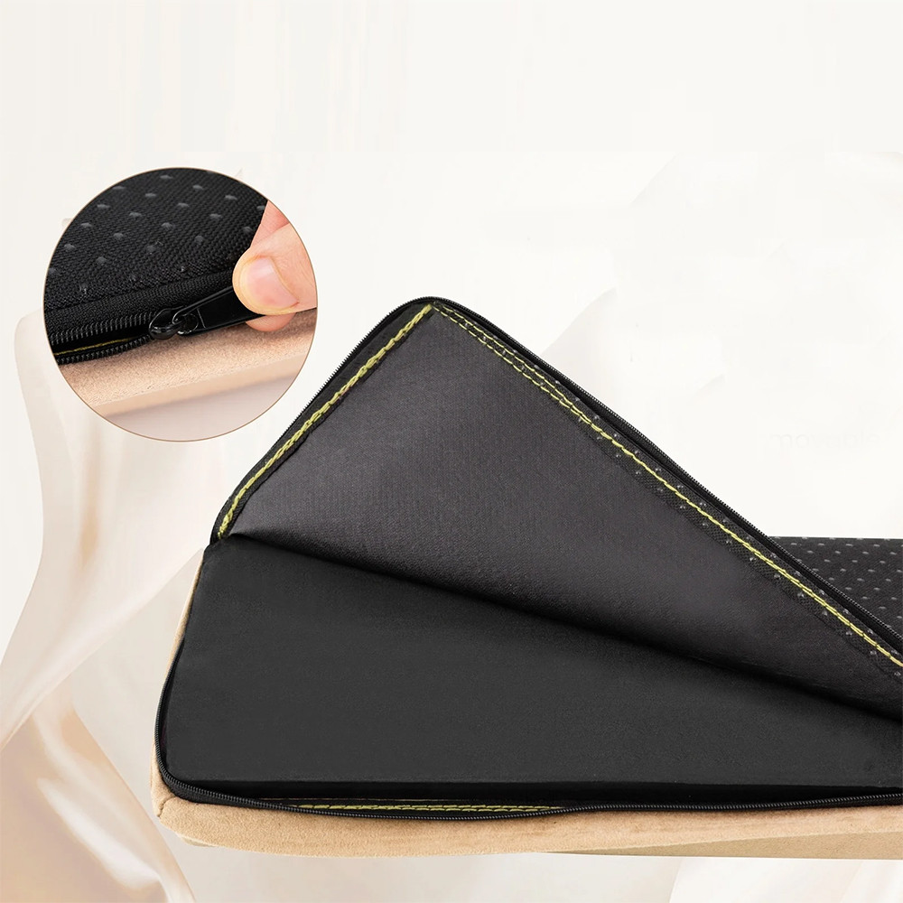 Povrch z příjemného semiše je příjemný na dotek a protiskluzový, zatímco základna z Oxfordské tkaniny udržuje kladinu bezpečně na místě na různých podlahových površích.