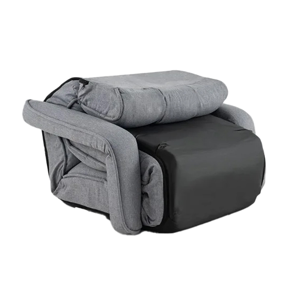 Není potřeba žádná montáž, prostě ji rozbalíte a používáte. Když přijdou hosté nebo chcete uvolnit místo, jedním pohybem ji složíte do kompaktních rozměrů. Opěrka hlavy, opěradlo, područky i nohy jsou nastavitelné, takže snadno přepnete mezi polohami pro odpočinek, čtení nebo ležení.