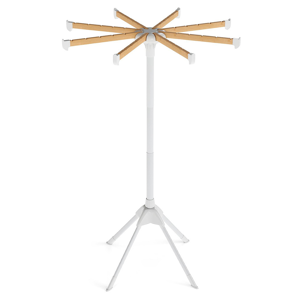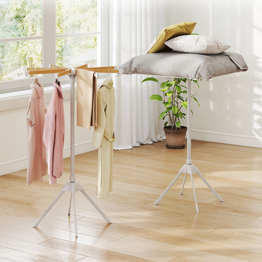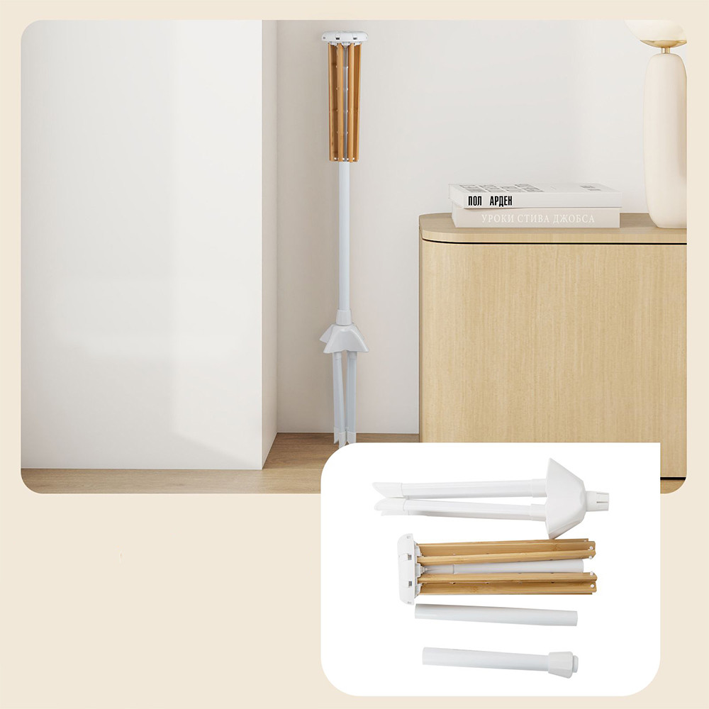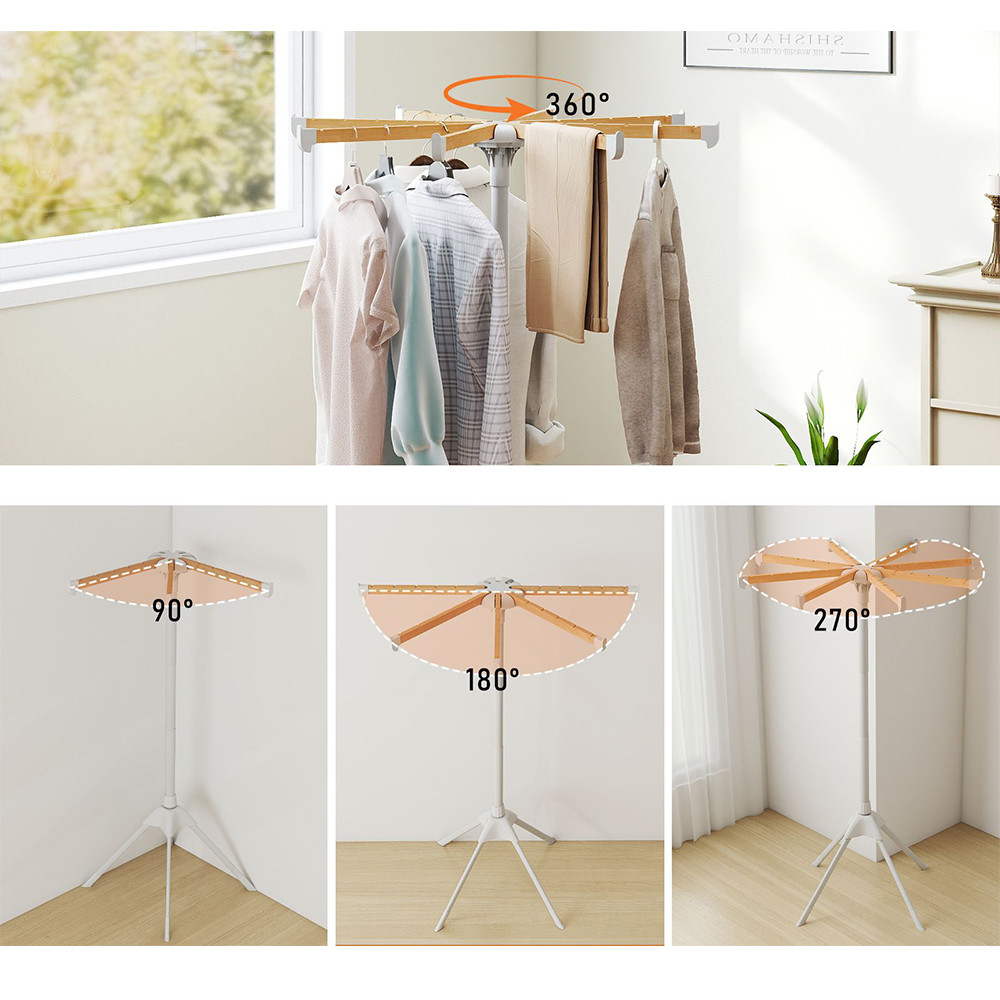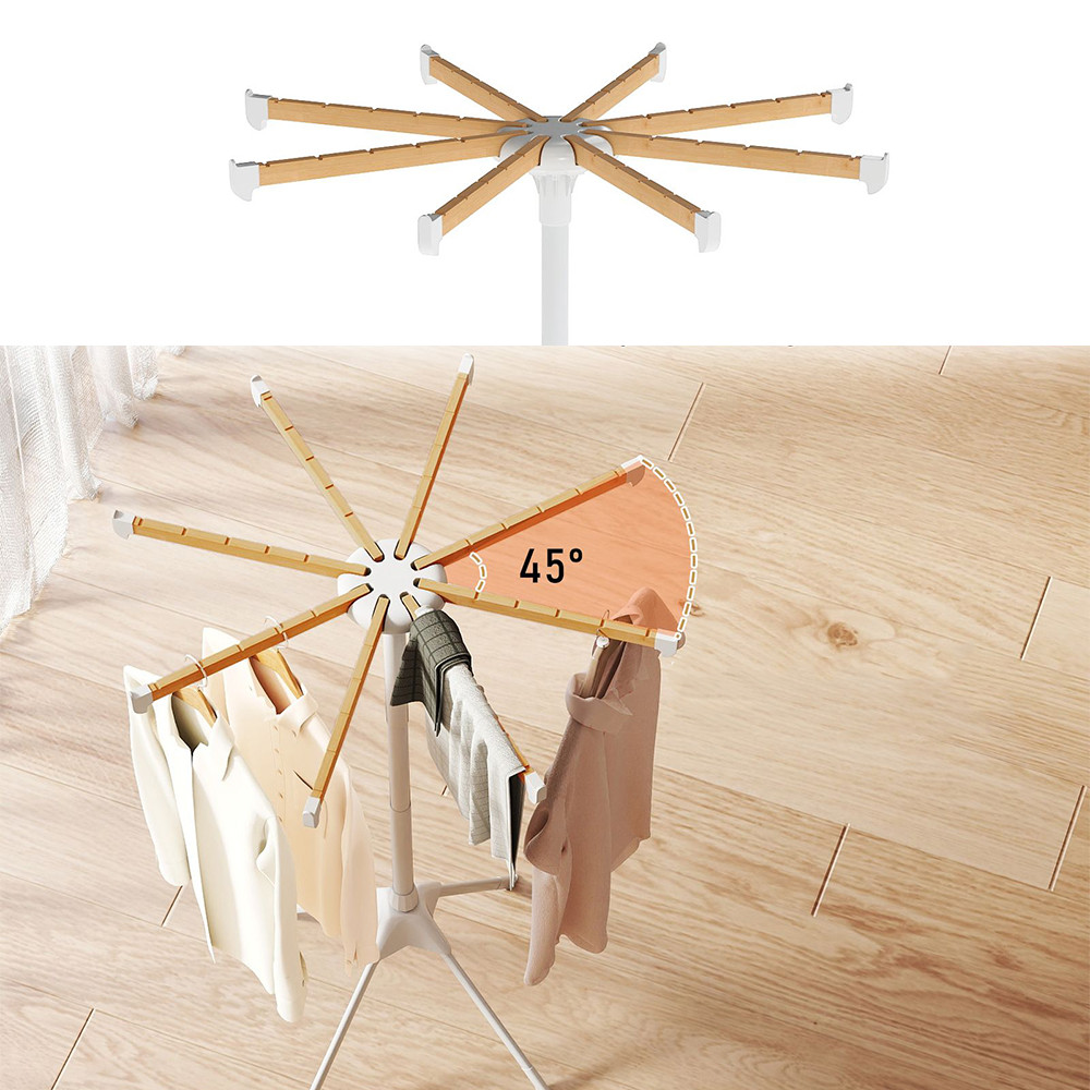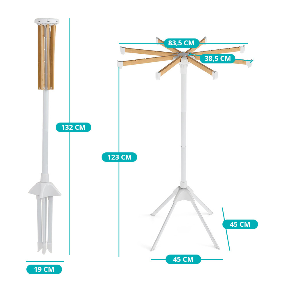 Osm bambusových tyčí poskytuje celkem 40 míst na zavěšení, což umožňuje sušení košil, triček, ručníků nebo lehčích bund současně s dobrou cirkulací vzduchu.