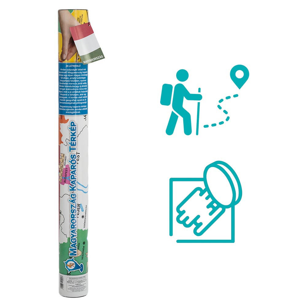 Objevte Maďarsko znovu se škrabací mapou, která činí dokumentaci vašich dobrodružství zábavnou díky svým barevným povrchům a unikátním ikonám. Každé seškrábané místo je vzpomínka, která trvá navždy. Je to ideální nástroj, jak zanechat zvláštní a osobní stopu na stěnách vašeho domova, zatímco prozkoumáváte zemi.