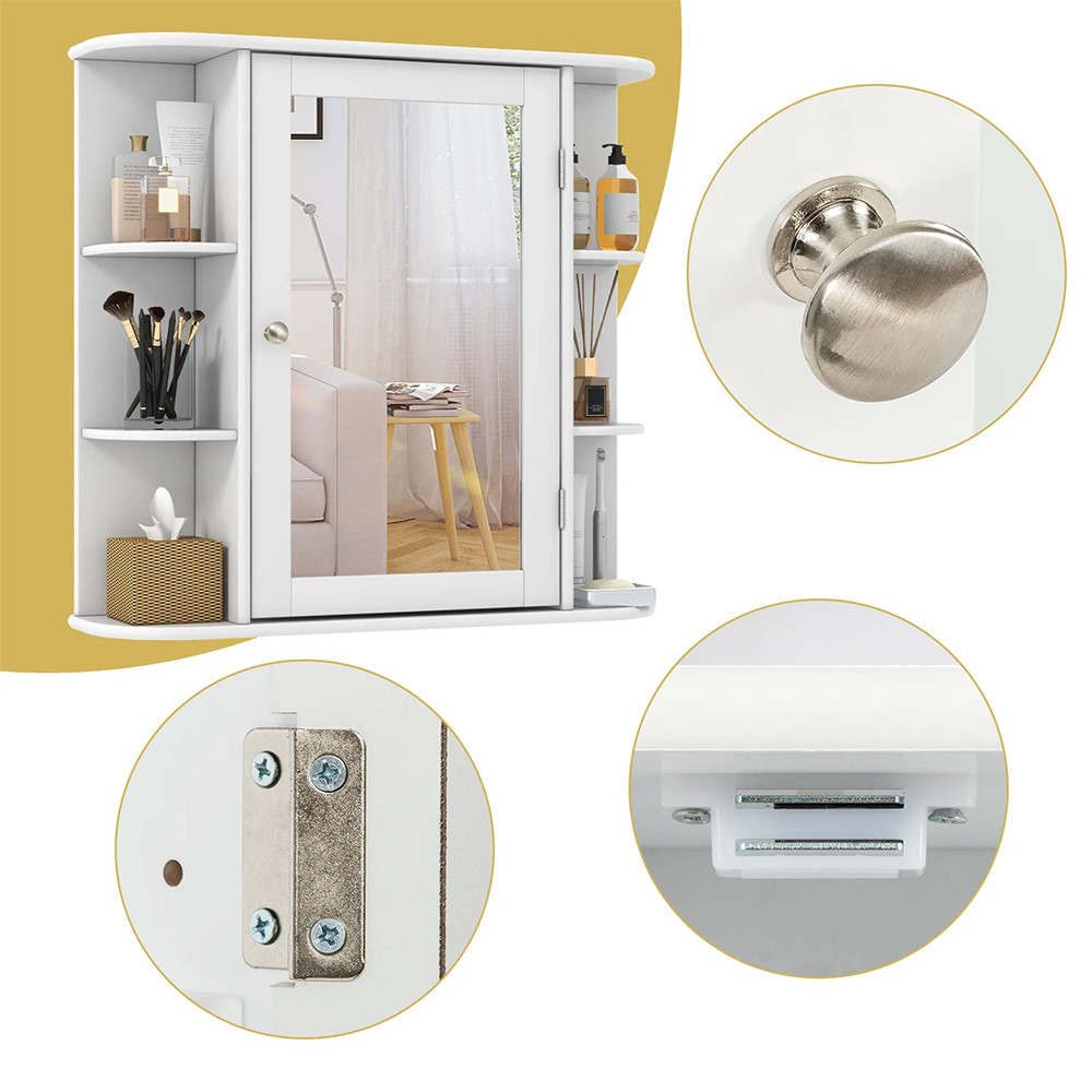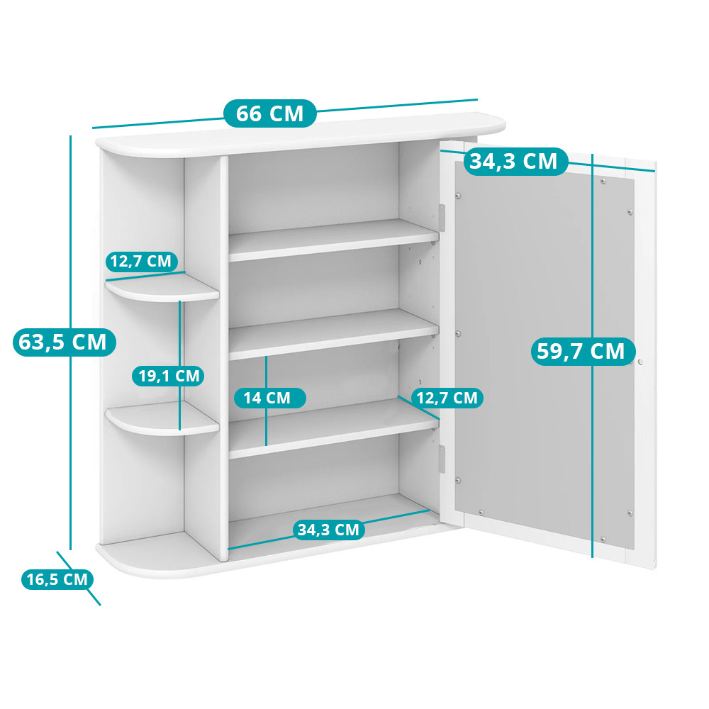 Se svým moderním bílým povrchem a zaoblenými tvary může být elegantním doplňkem do každé koupelny, ložnice nebo chodby. Kovová rukojeť a magnetické zavírání jsou diskrétní, ale praktické detaily.