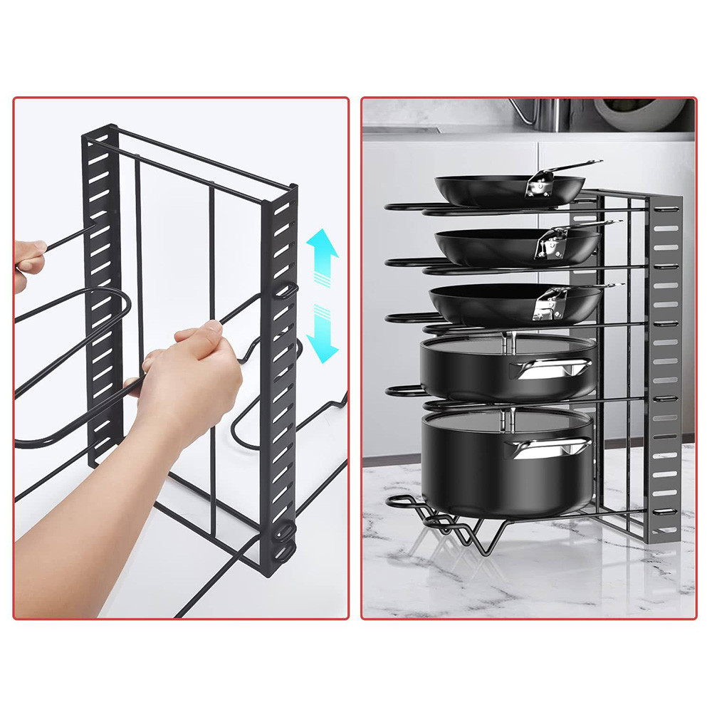 Vícepatrový organizér ti pomůže zbavit se chaosu v přeplněných zásuvkách a skříních. Díky odděleným úrovním má každý hrnec, poklička nebo deska své místo.
