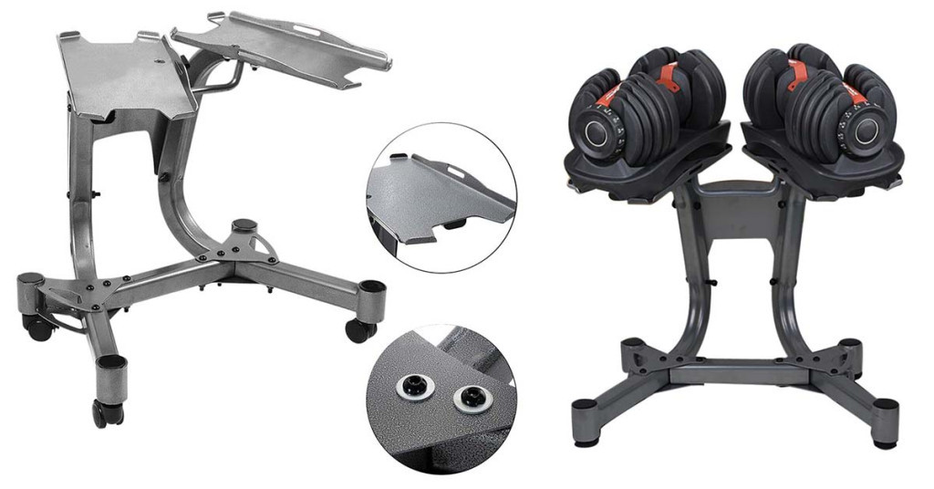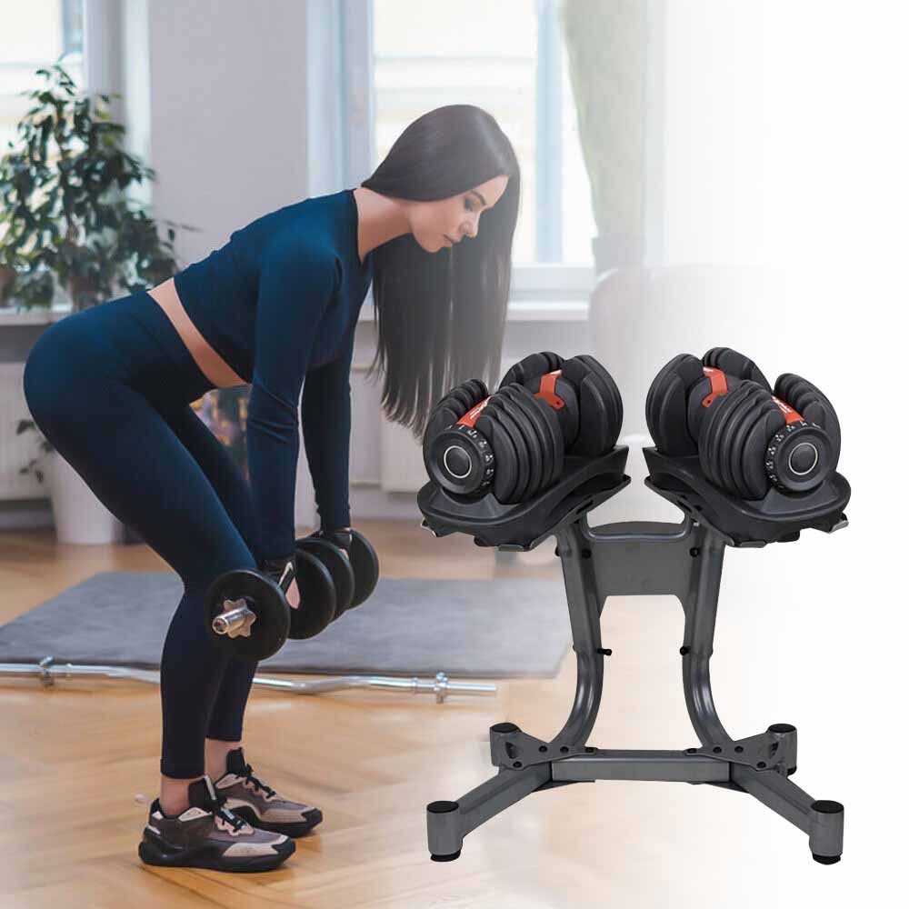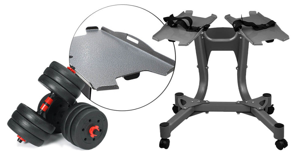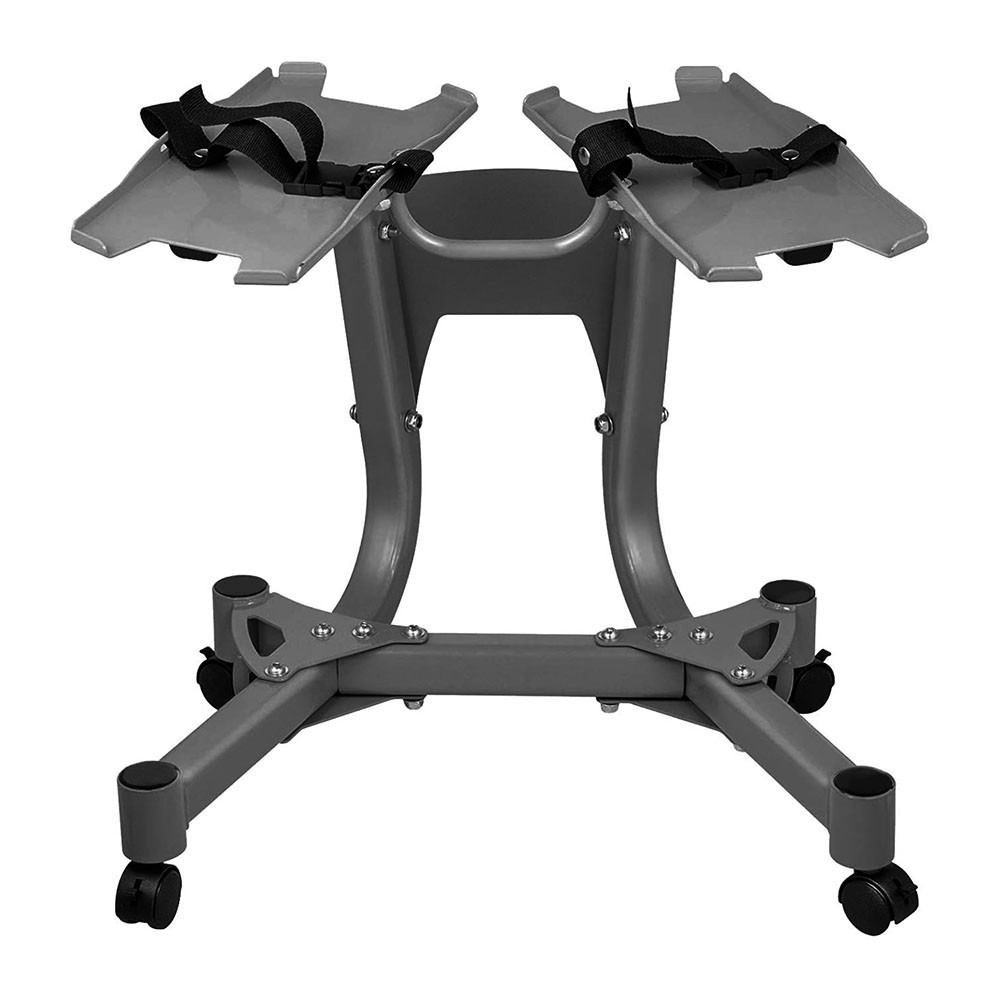 Stojan na nastavitelné činky je skvělou volbou do vaše domácnosti nebo do posilovny. Díky praktické vyměnitelné základně můžete připevnit kolečka, která jsou součástí balení, takže stojan můžete snadno přemístít nebo ho podle potřeby upravit do trvalé polohy pomocí stabilních protiskluzových podrážek. Na dno můžete nalepit ochranné samolepky, aby to rozhodně nepoškodilo podlahu. Zátěžové misky mají upevňovací popruhy, aby byla vaše váha stabilně a bezpečně na místě.