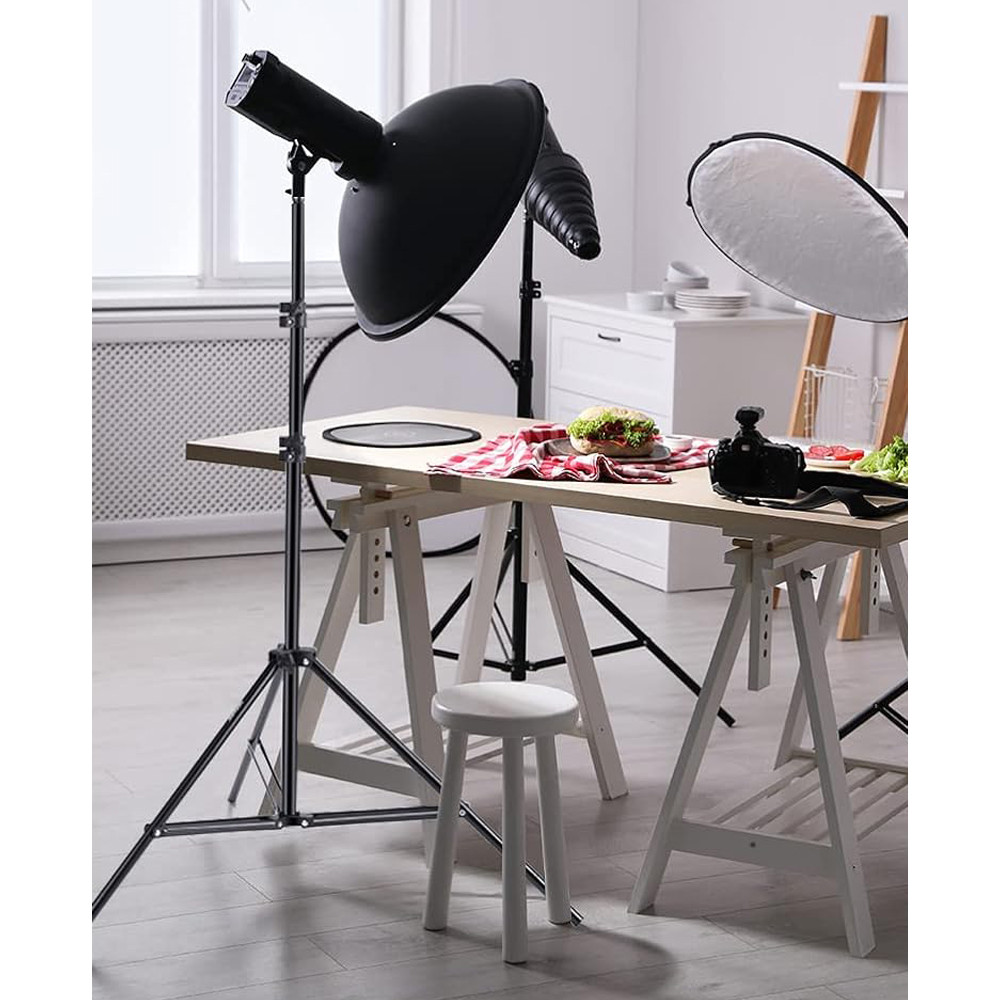 Tento lehký, ale pevný světelný stativ nabízí spolehlivou oporu pro různé typy osvětlení. Umožňuje přesné nastavení světla při portrétní fotografii, produktových snímcích nebo tvorbě videa. Kompaktní konstrukce usnadňuje přenášení.