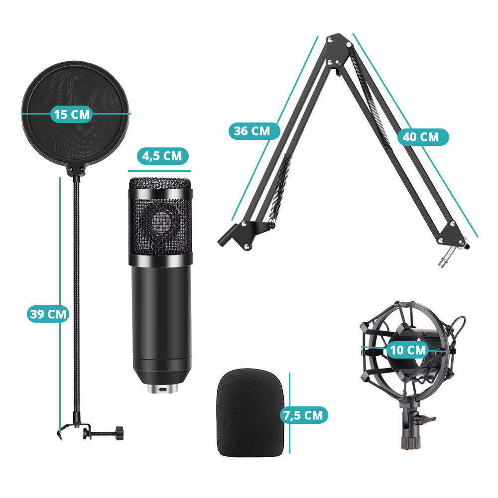 Součástí balení je veškeré příslušenství – pop filtr, pěnová ochrana proti větru, odpružený držák a USB zvuková karta – vše pro stabilní, čistý záznam bez rušení. Nastavitelné kovové rameno snadno připevníš ke stolu a jednoduše nastavíš pro co nejlepší zvuk.
