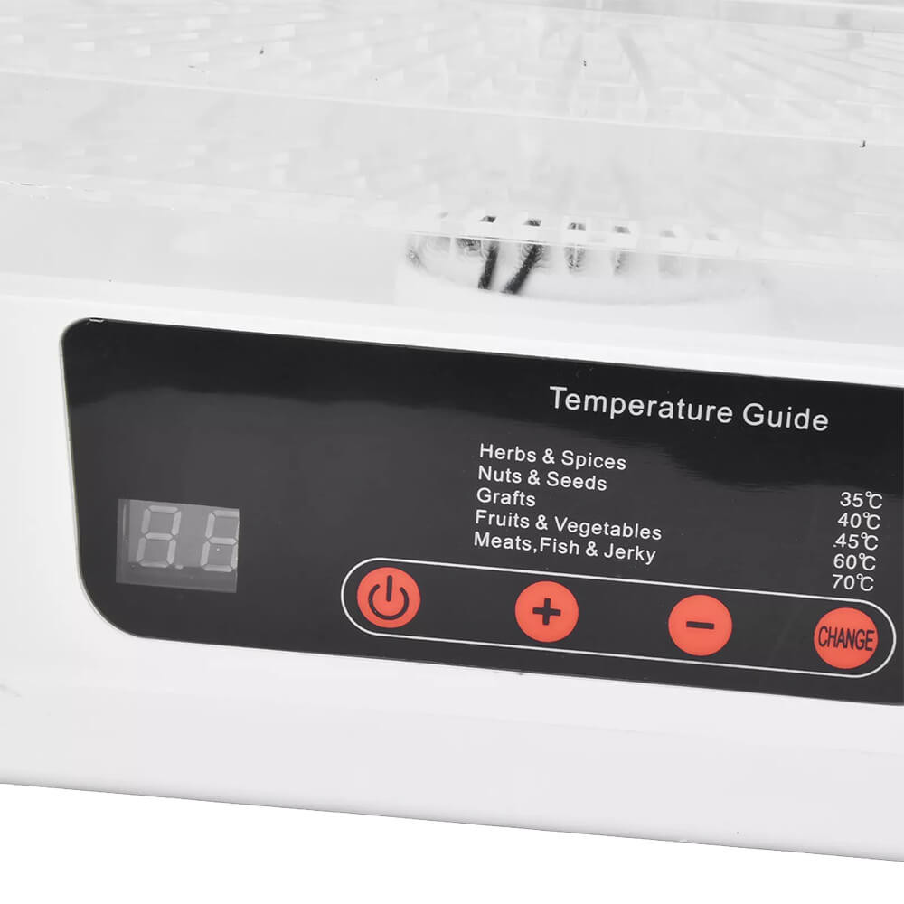 Díky dotykovému LCD displeji snadno nastavíte požadovanou teplotu a sušení bude rovnoměrné. Díky kompaktním rozměrům se hodí i do menších kuchyní a průhledné platy umožňují sledování procesu.