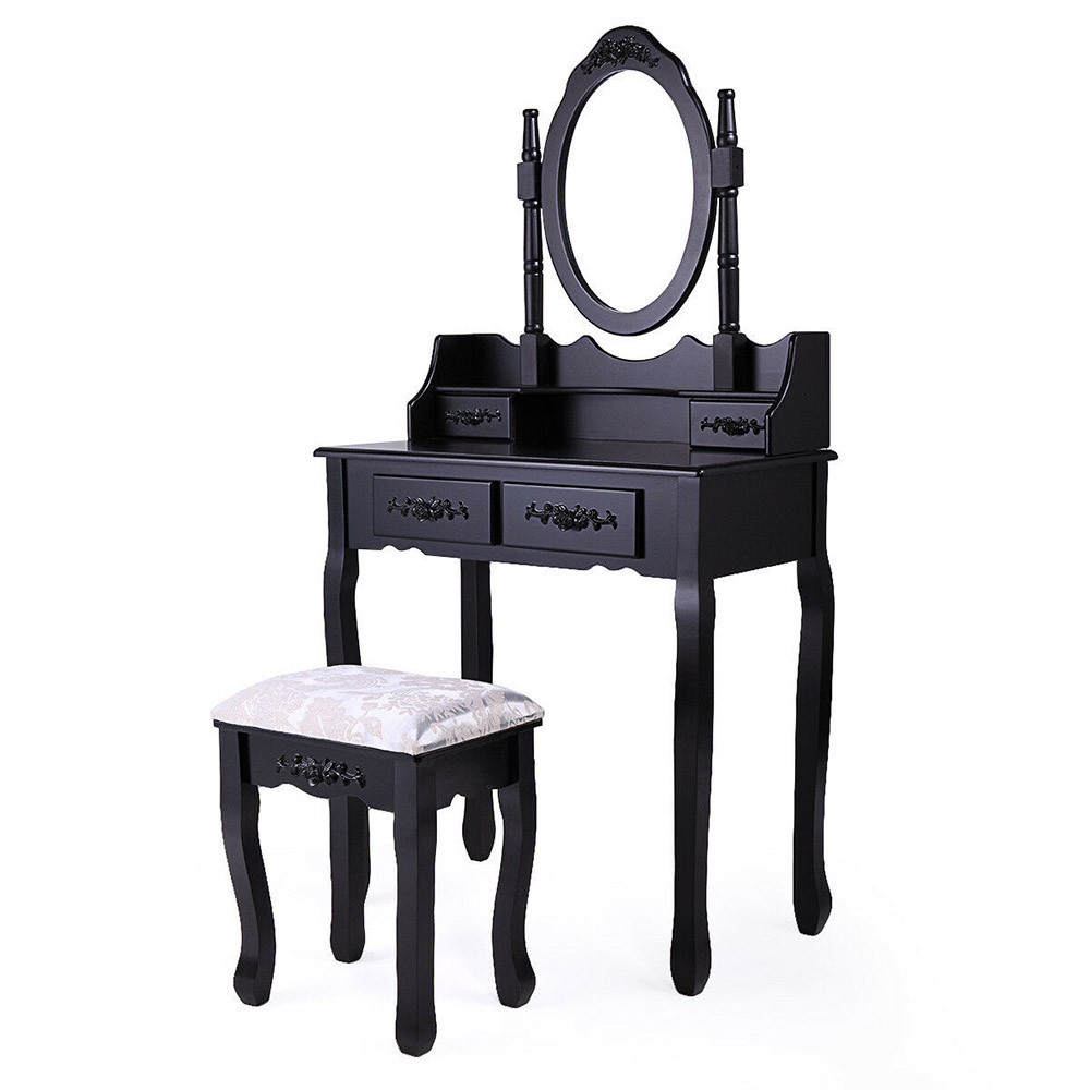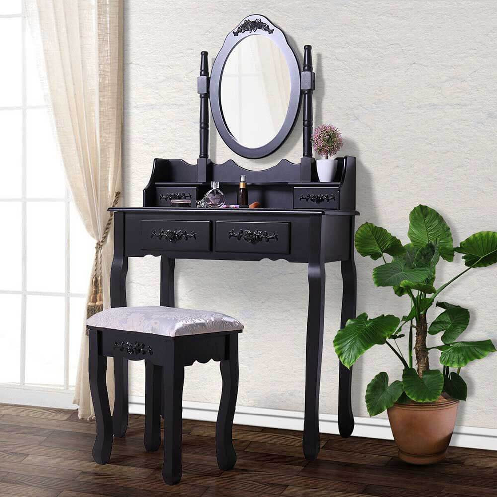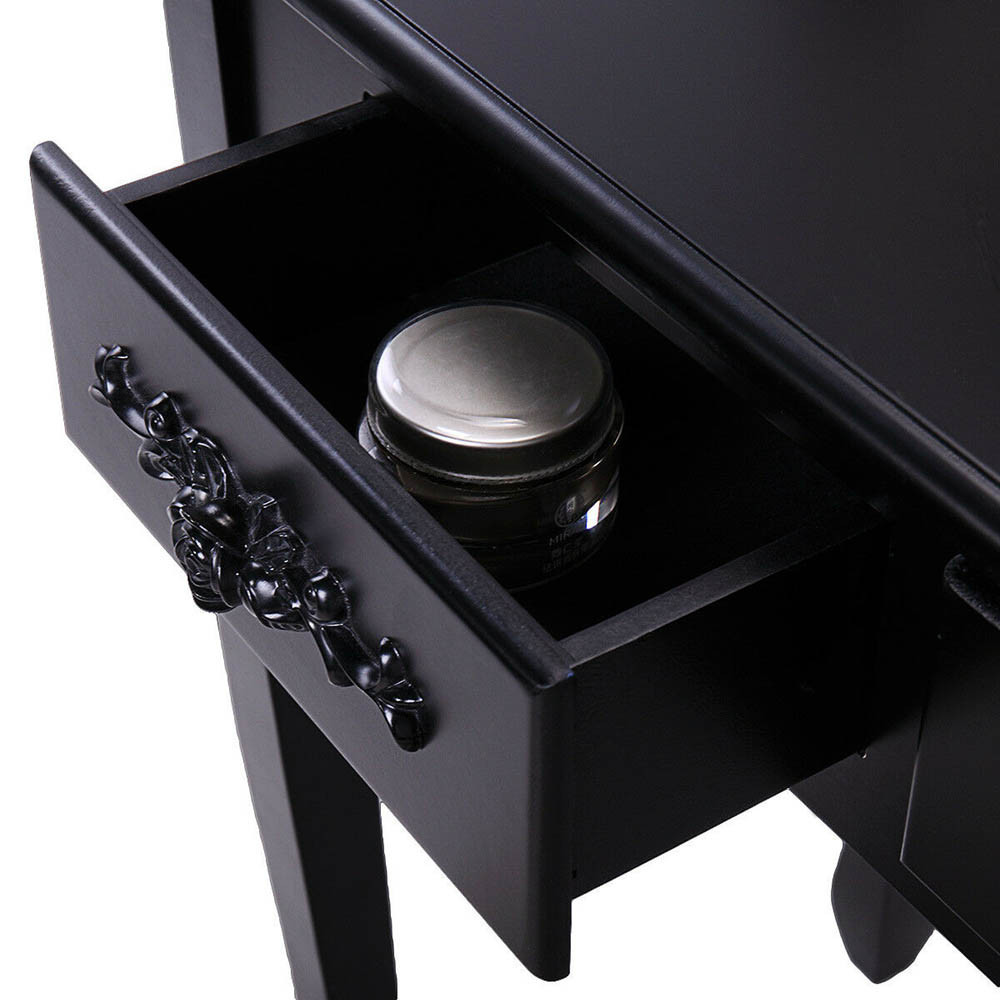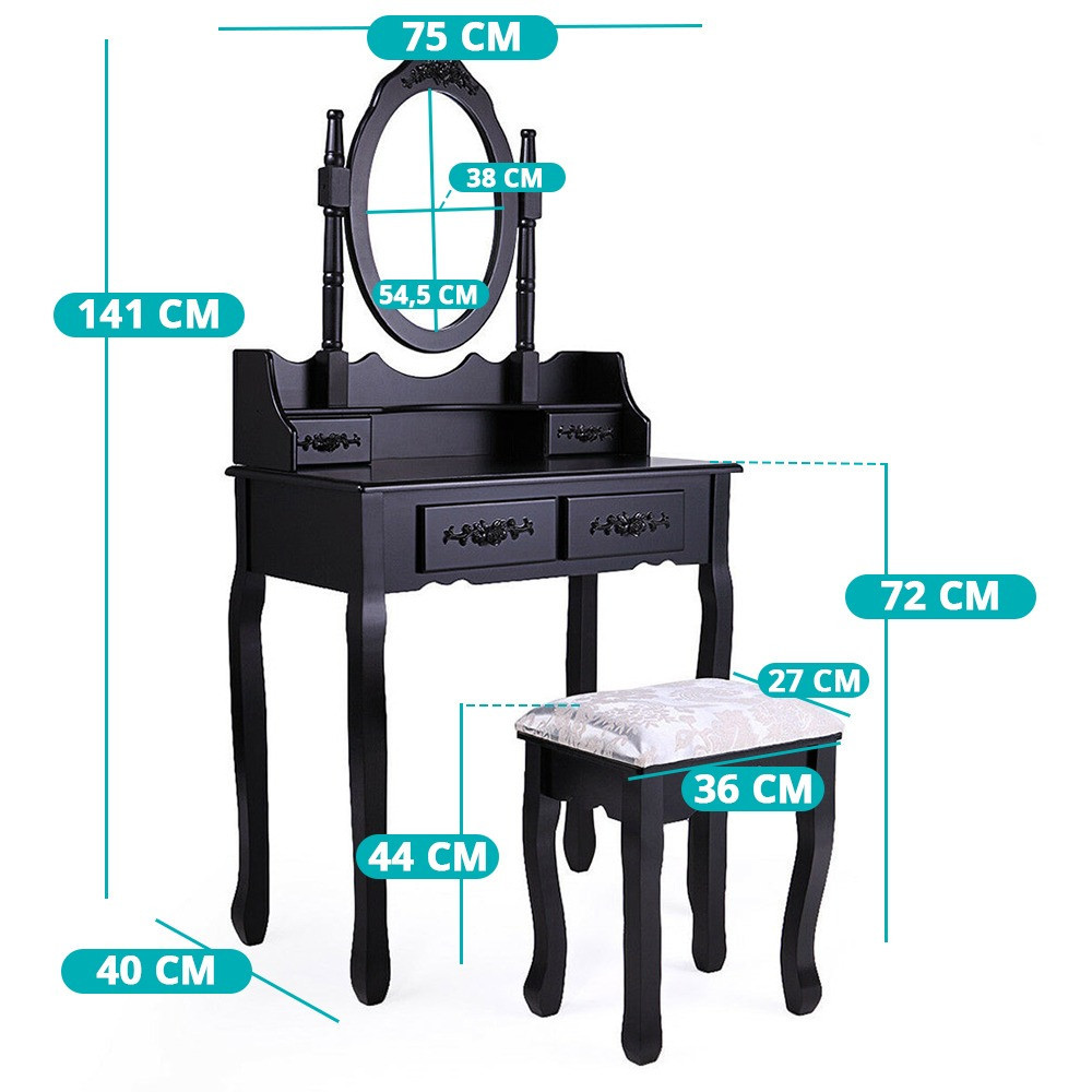 Toaletní stolek disponuje čtyřmi zásuvkami: dvě menší jsou umístěny na horní poličce, zatímco dvě větší pod hlavní deskou. Veškeré potřebné doplňky tak budou snadno dostupné. Díky odnímatelné horní části lze stolek využít i jako psací stůl, což umožňuje jeho univerzální začlenění do jakéhokoli interiéru.