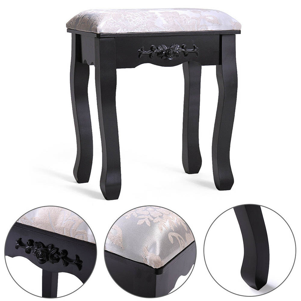 Klasické linie a reliéfní vyřezávané dekorace dodávají stolku romantický a elegantní vzhled. Pevná dřevěná konstrukce zajišťuje stabilitu a dlouhou životnost, zatímco polstrovaná sedací část taburetu nabízí maximální pohodlí při každodenním používání.