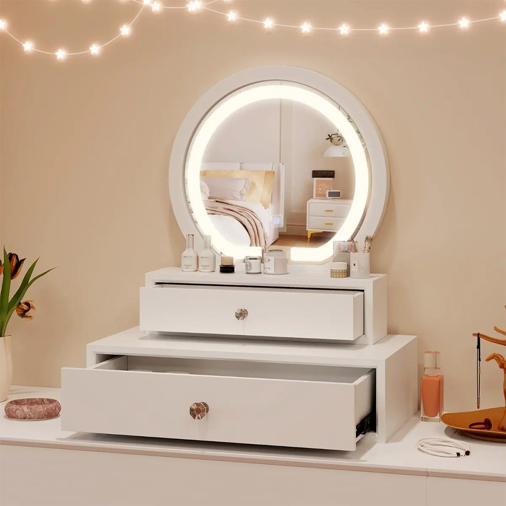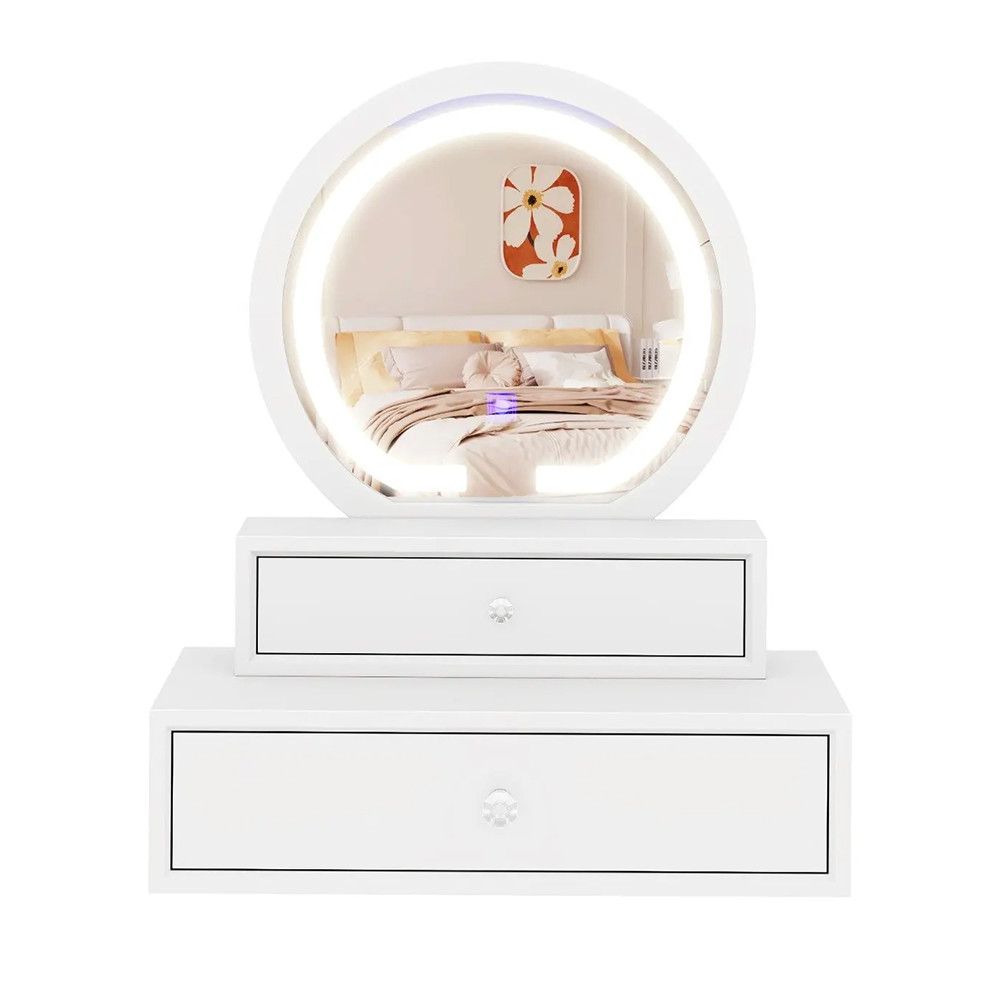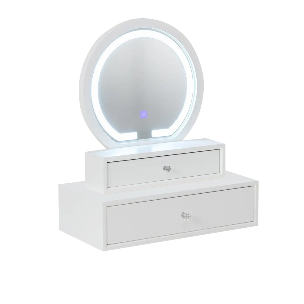 Tohle stylové toaletní zrcadlo na stůl kombinuje funkčnost s estetikou. Jeho velké, bezzkreslové zrcadlo vám pomůže dosáhnout precizní aplikace make-upu, zatímco jeho čistý bílý design se bezproblémově hodí do jakéhokoli interiéru.