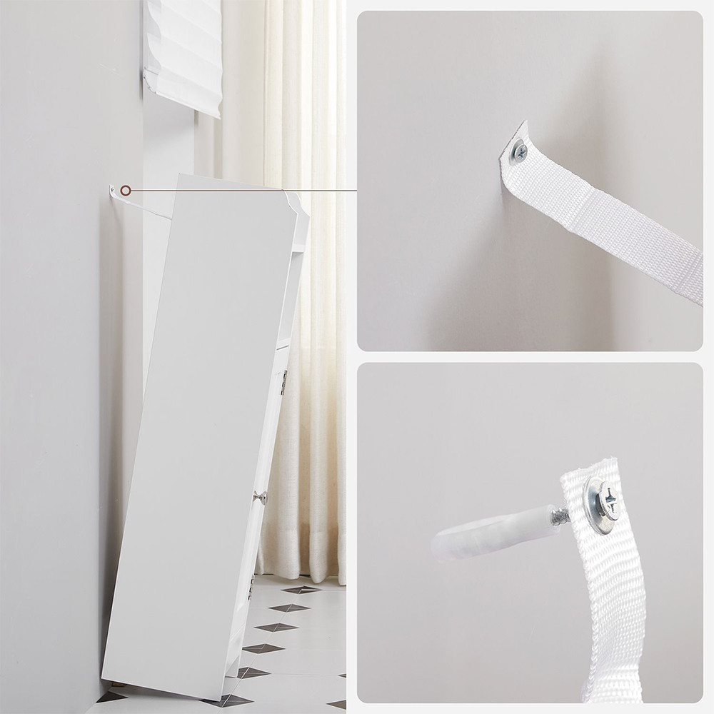 Díky označeným dílům a podrobným pokynům lze skříňku rychle sestavit, a její lakovaný MDF povrch je odolný vůči vlhkosti a snadno se čistí.