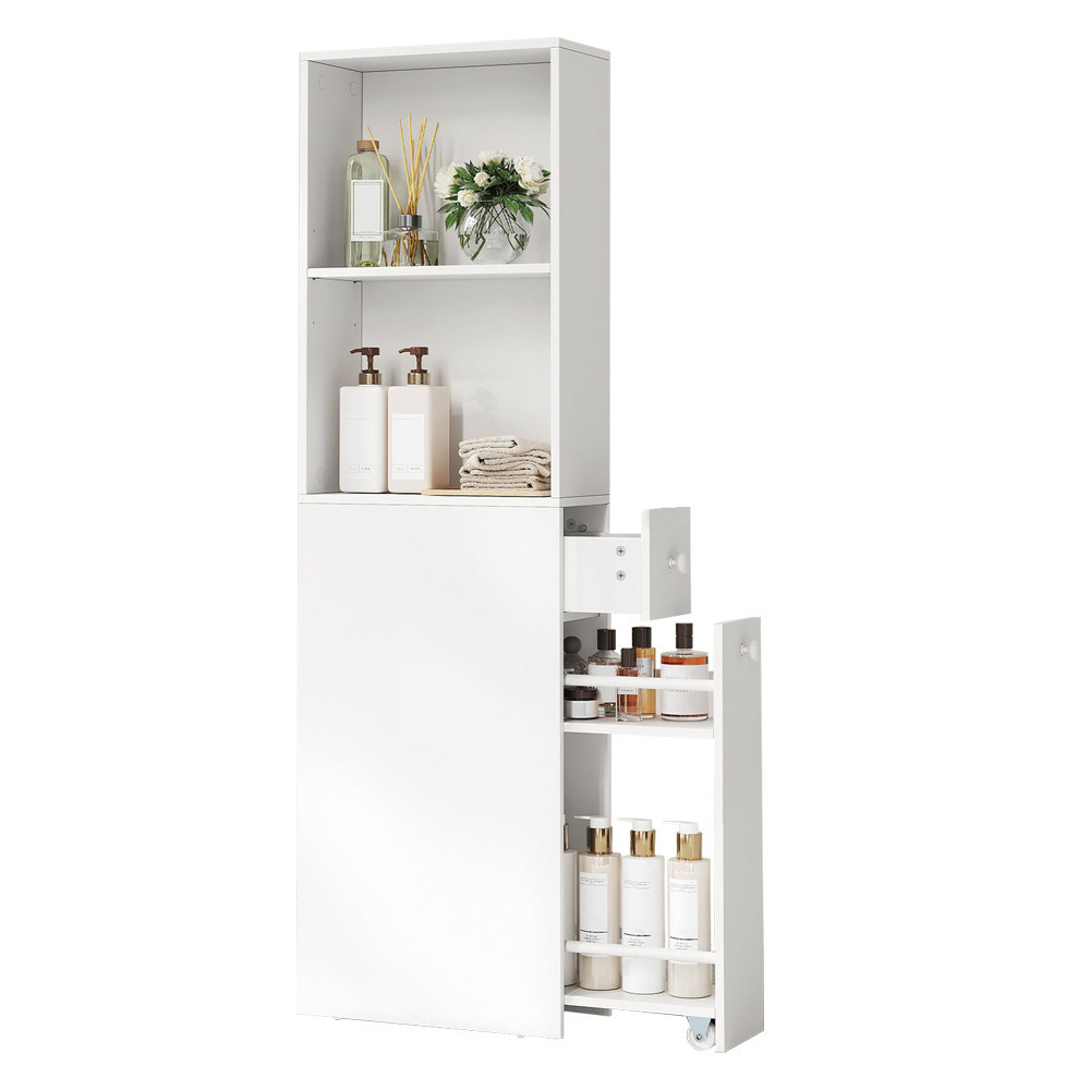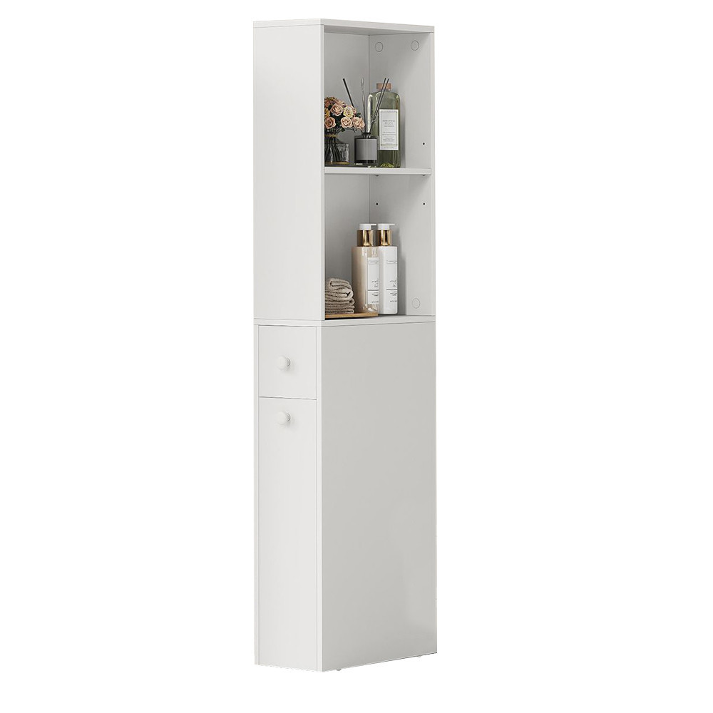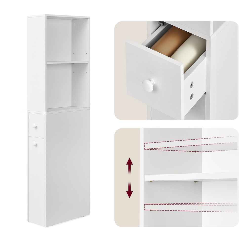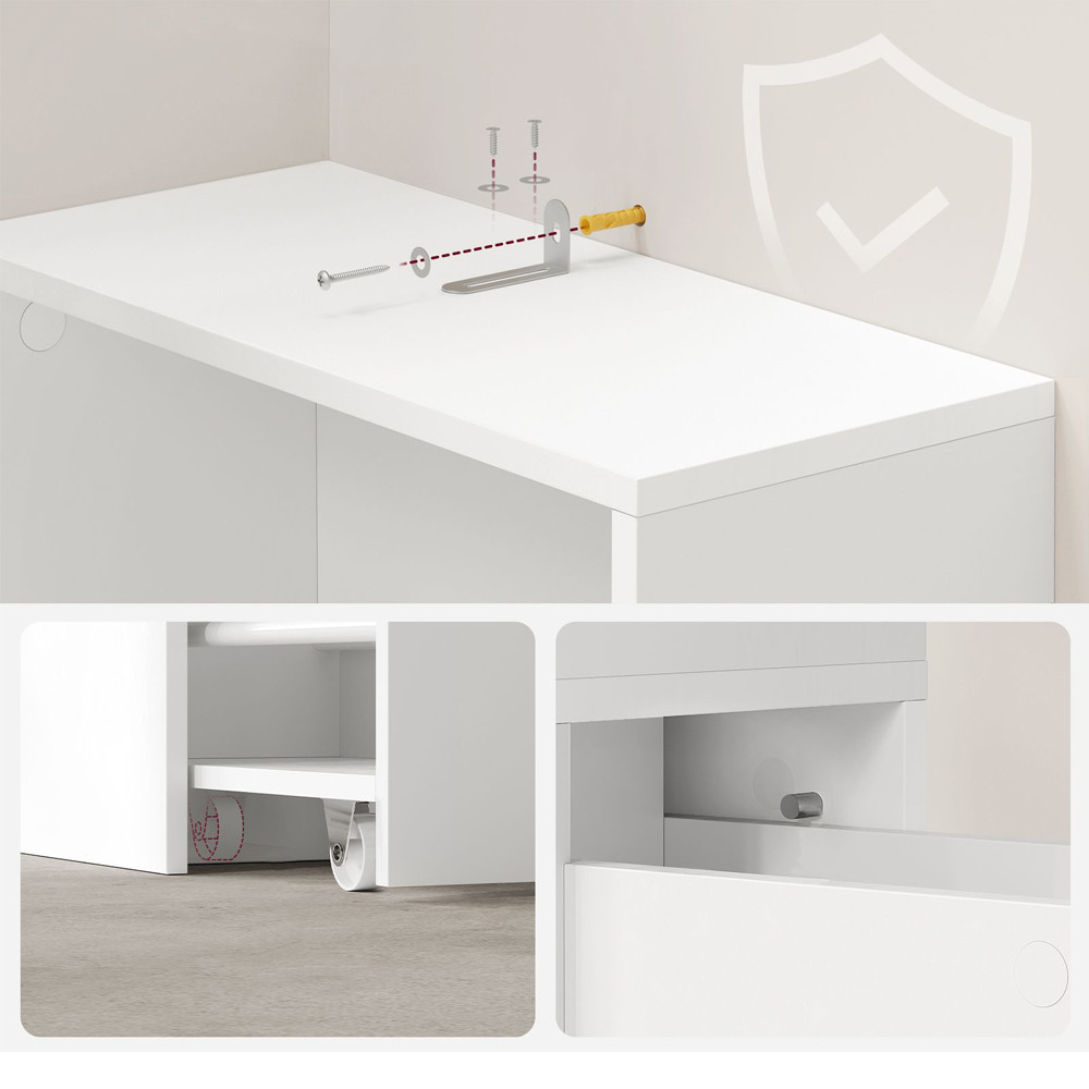 Kvalitní konstrukce z dřevotřísky zajišťuje trvanlivost a stabilitu, zatímco sada pro upevnění proti převrhnutí zajišťuje bezpečné používání i na nerovných podlahách. Jeho čistá bílá barva se dokonale hodí do každé moderní koupelny.