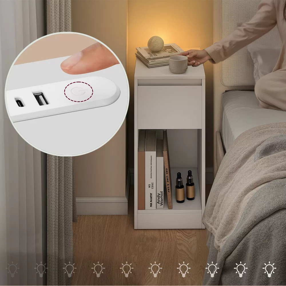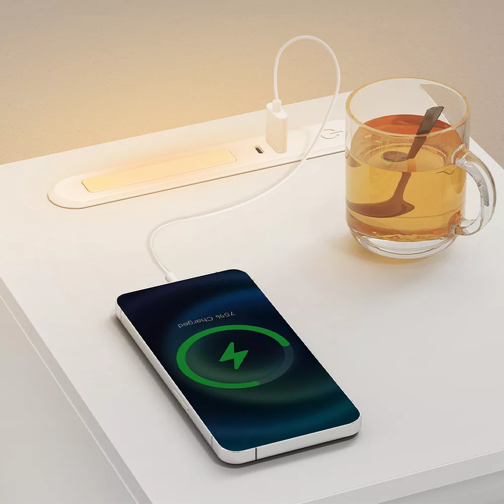 Díky praktickým portům USB-A a USB-C není potřeba žádných dalších prodlužovacích kabelů nebo nabíječek. Váš telefon nebo jiná zařízení mohou být vždy na dosah a nabitá, i v noci.