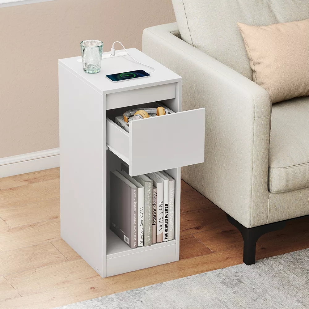 Jeho kompaktní velikost umožňuje snadné umístění do těsných prostor, jako je vedle postele nebo v menších bytech. Zásuvka a dolní police poskytují dostatek místa pro uložení knih, doplňků nebo jiných drobných předmětů.