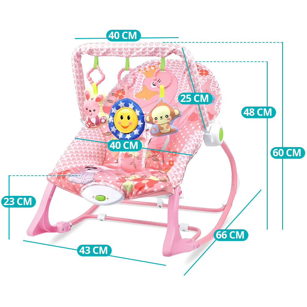 Lehátko má měkký, polstrovaný sedák a ergonomickou opěrku zad, kterou lze nastavit do dvou poloh, aby vždy vyhovovala potřebám vašeho miminka. Jemná vibrační funkce pomáhá při uvolnění a usínání, zatímco vestavěné melodie vytvářejí příjemnou atmosféru.