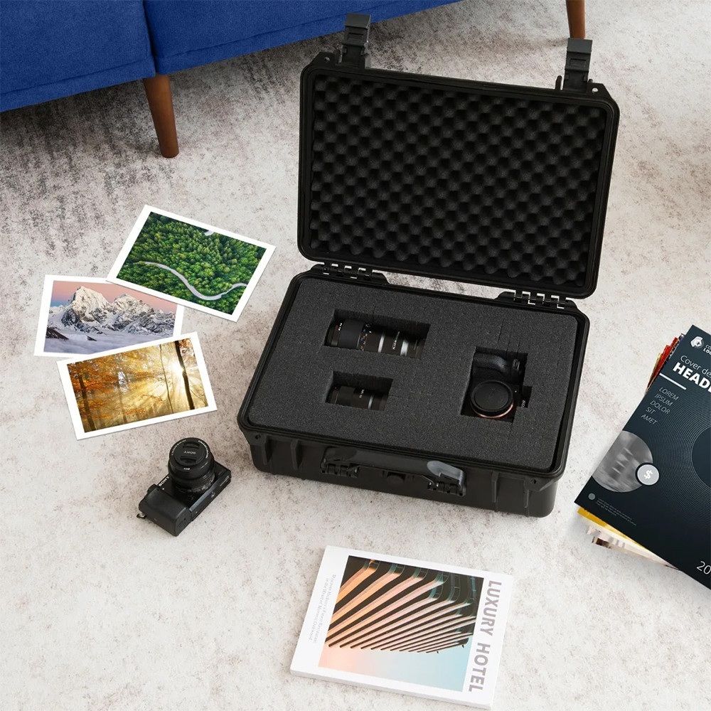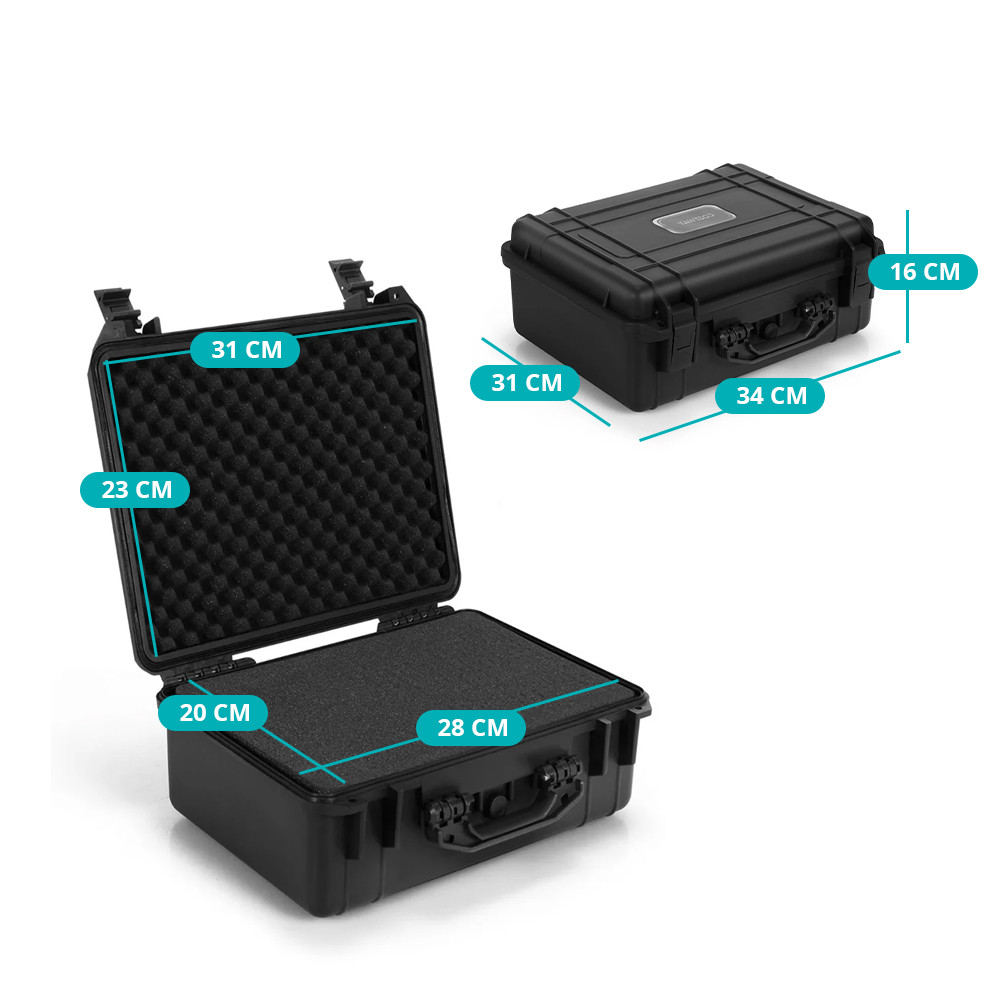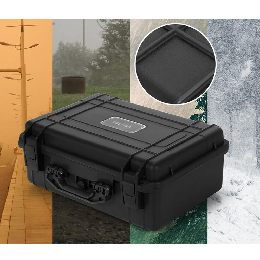Vodotěsný kufr poskytuje spolehlivou ochranu pro vaše cenné vybavení během cestování, venkovního použití nebo práce. Uzavřený design pomáhá udržet vlhkost, prach a nečistoty venku.