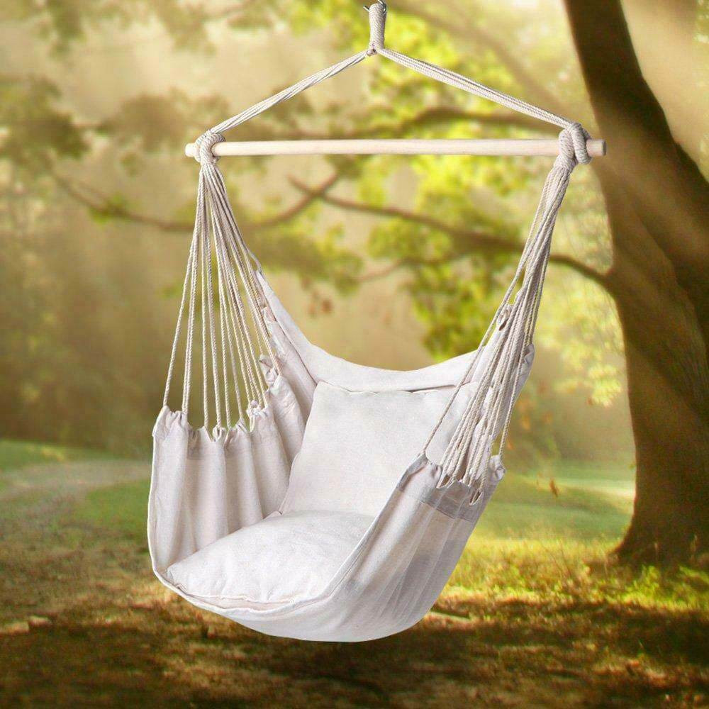 Závěsné houpací křeslo s polštářem - špinavě bílé