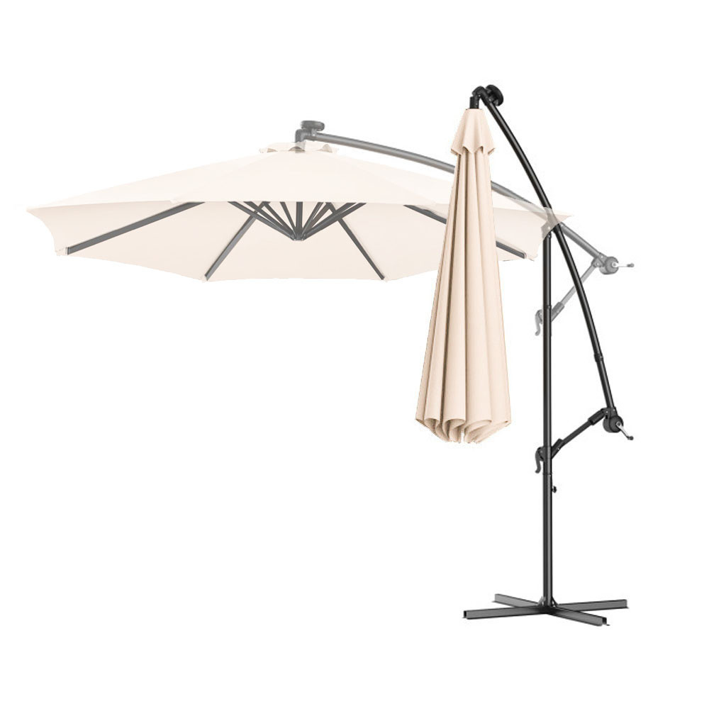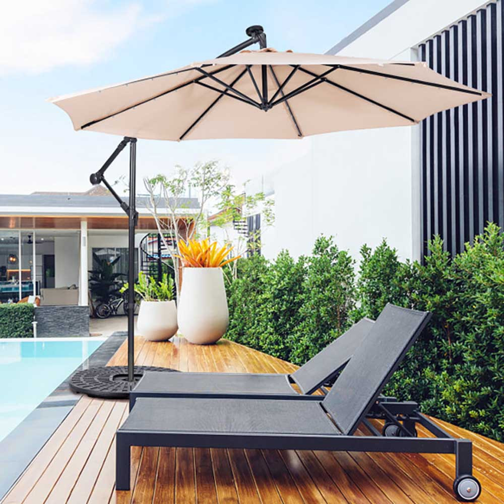 Se průměrem 2,7 metru se tento elegantní deštník dobře hodí k jakémukoli venkovnímu nábytku. Jeho vynikající UV ochrana chrání vaši pokožku před škodlivými slunečními paprsky, což vám umožňuje užívat si léto bez obav pod ním.